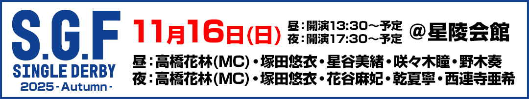 11月16日(日)開催『SGF シングルダービー2025‐Autumn‐』に塚田悠衣が出演いたします。