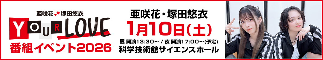 2026年1月10日(土)『亜咲花・塚田悠衣 YOUR LOVE番組イベント2026』開催